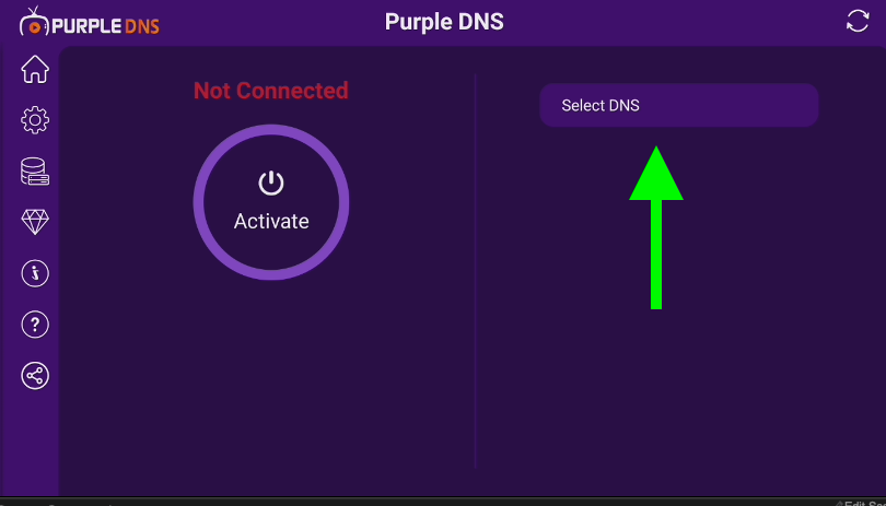 3 – Revenez à présent sur « Home » via le panneau gauche de l’application et cliquez sur « Select DNS »