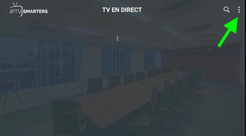 1 – Lancez l’application SMARTERS IPTV ET repérez les trois points en haut à droite de votre écran